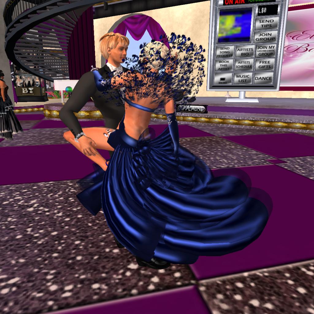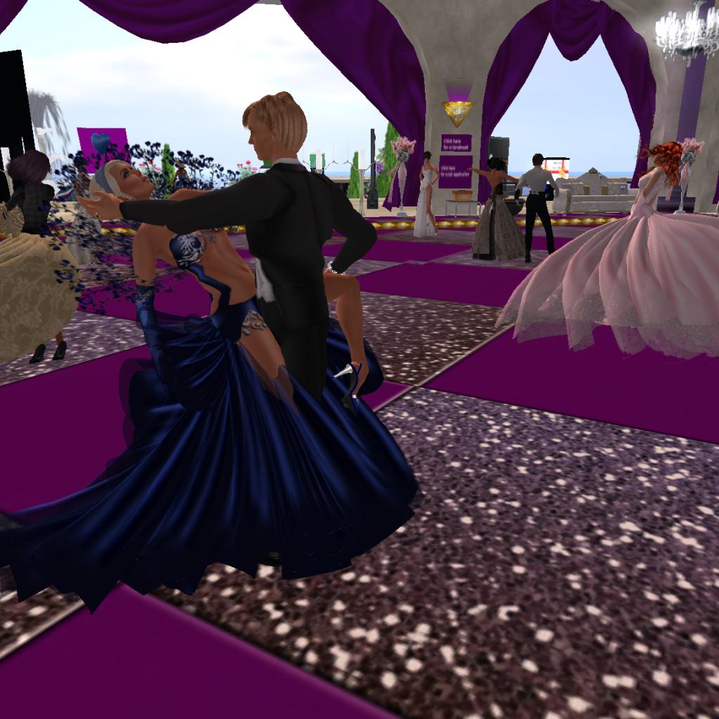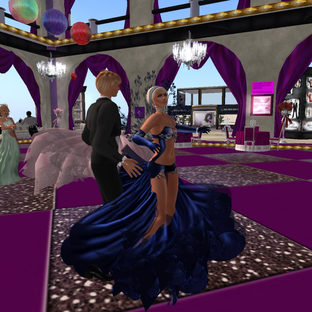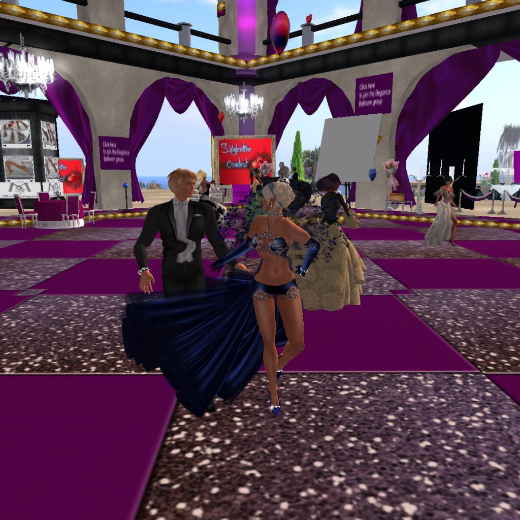 Snapshots of Magnuz and Maid Marioman dancing in the sim Elegance Ballroom in Second Life taken 2011-01-29